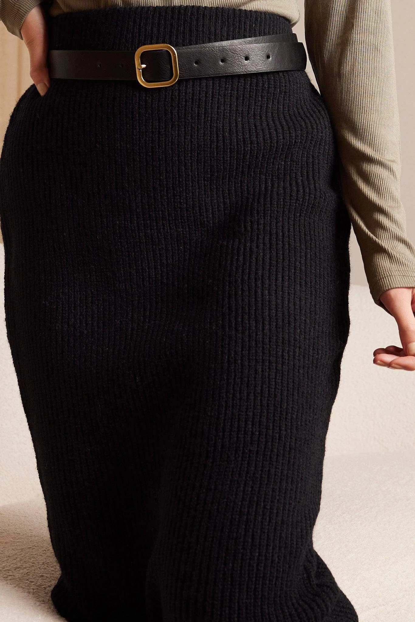 Our Anisse Knit Skirt comes in a black colour. An essential piece of clothing every woman needs to have on hand no matter the season, this staple is tight fitting on the body, high waisted and falls on the calf. Complete the look with our Anisse Knit!