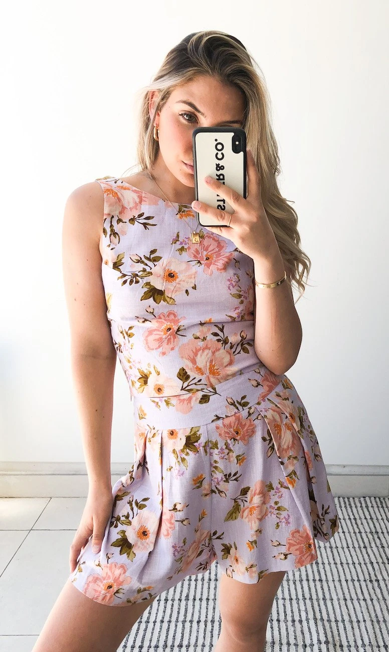 Our Chateau Shorts will transport you to feeling like you are the queen in a French Chateau. These high waisted shorts are beautifully designed with a lilac toned floral print featuring pleated detailing. This light weight piece pairs beautifully with a basic plain teeΒ for an effortless summer outfit.
