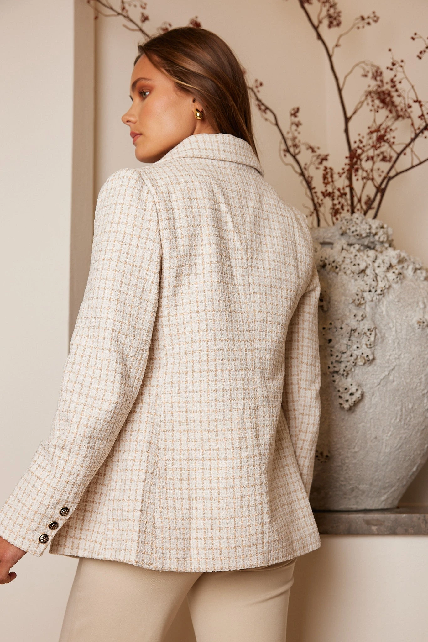 Our Jemah Blazer comes in a print in shades of beige. Give your winter corporate look an ultra-sophisticated update with this staple that features a notched lapel collar, long sleeves, mid-front buttons and side double welt pockets. Style with a shirt and trousers ensemble!