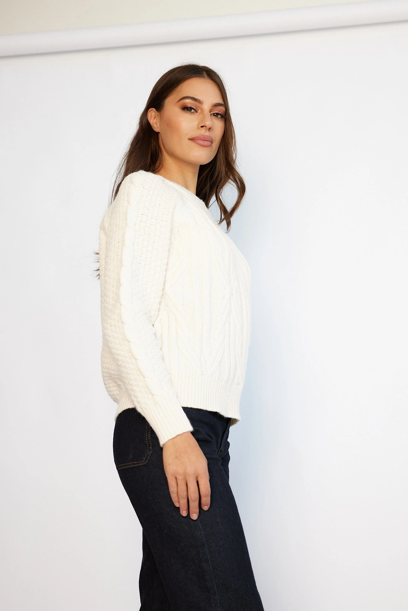 - Angela is 174 cm tall, and has an 81 cm bust, 64 cm waist, & 91 cm hips. She is wearing a SM / AU 8-10 / US 4-6.ย Thisย knit is true to size.