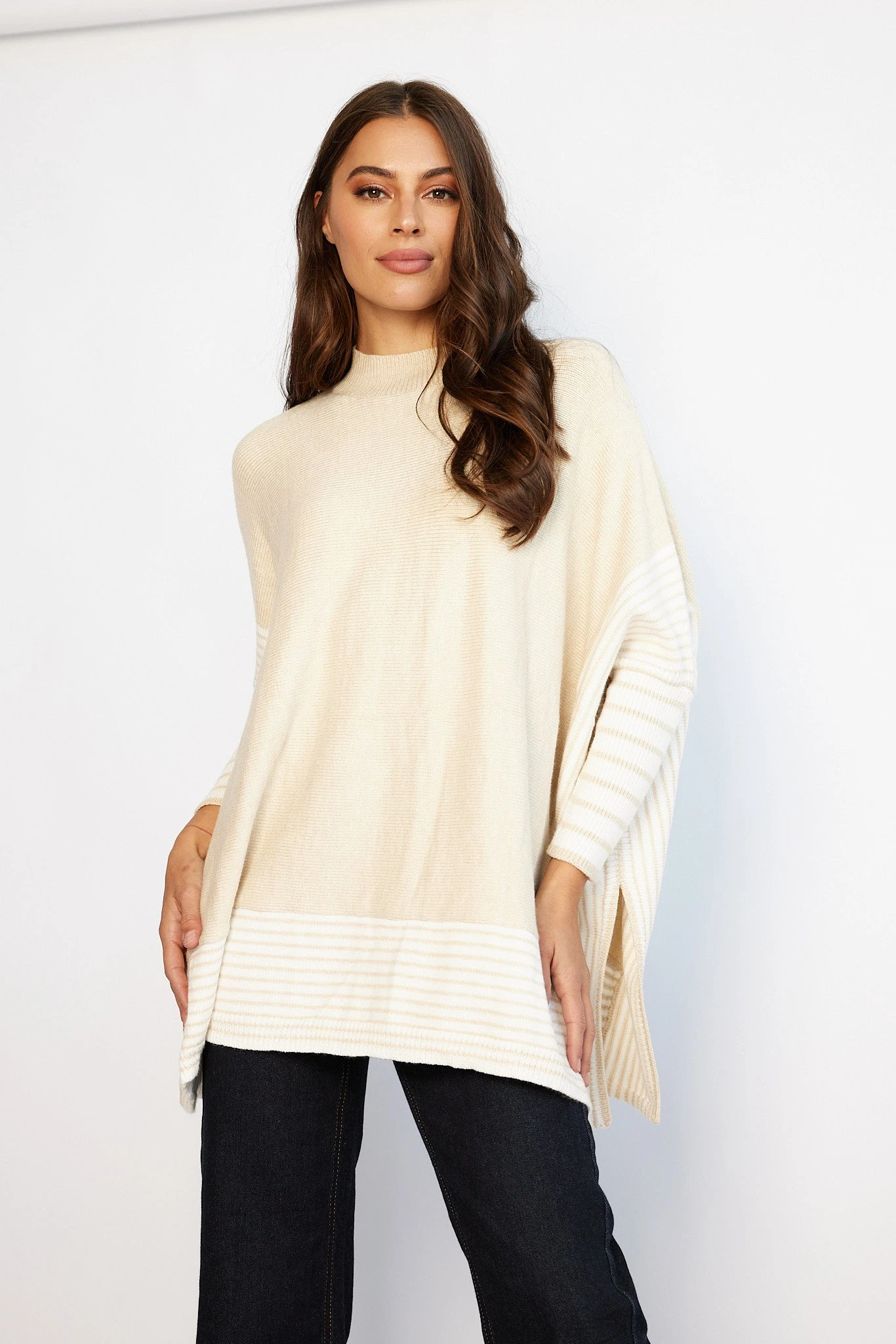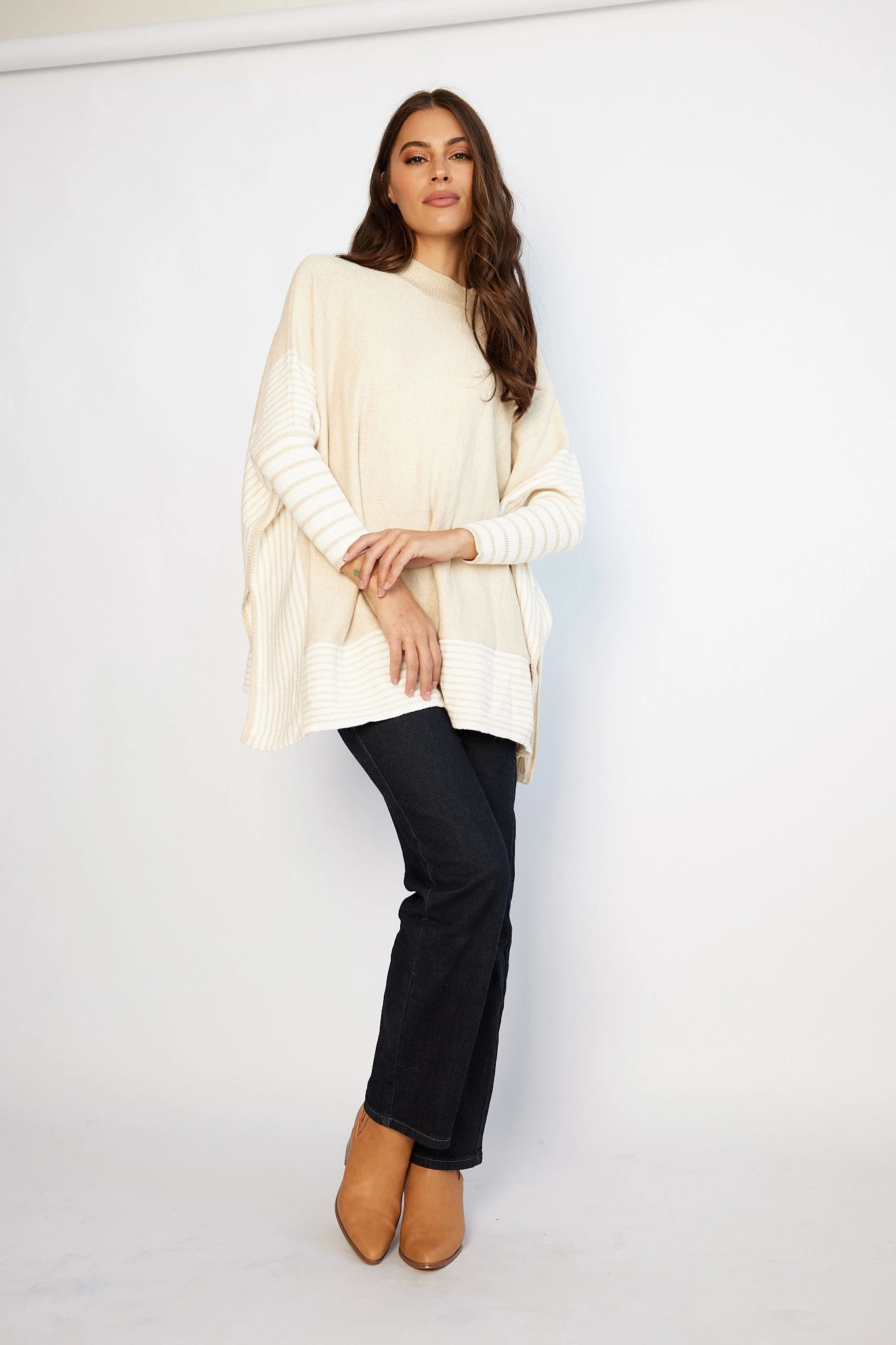 Our Yolana Knit comes in beige and white tones. A look that command attention, this top is designed with a ribbed round neckline, stripe print and flowy relaxed bodice. Style with your casual ensembles!